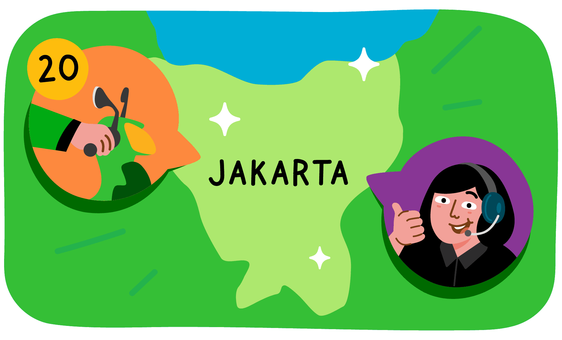 20 ojek, 1 call center, dan 1 misi untuk menyelesaikan masalah masyarakat Indonesia. Awal langkah Gojek membuat jalanan Jakarta menjadi sebuah lautan hijau.