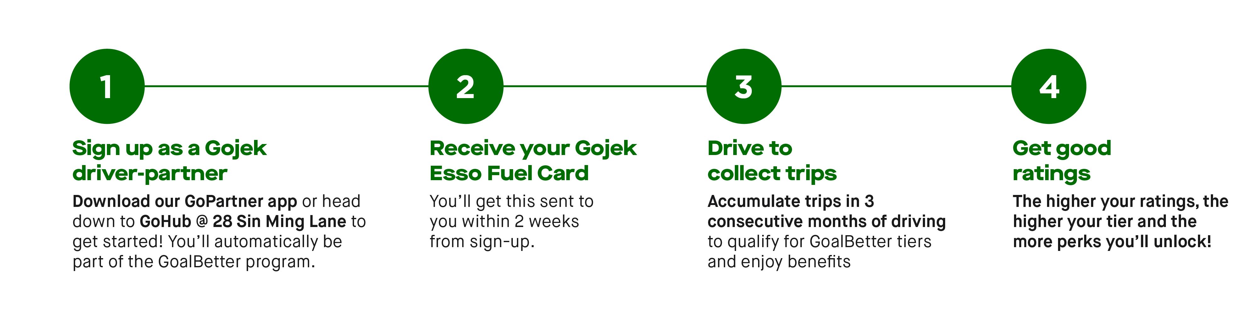 GoalBetter is a program designed to give you perks for driving with us! Here’s where we’ll help you achieve your goals while driving with Gojek. All registered driver-partners will automatically be part of GoalBetter.
