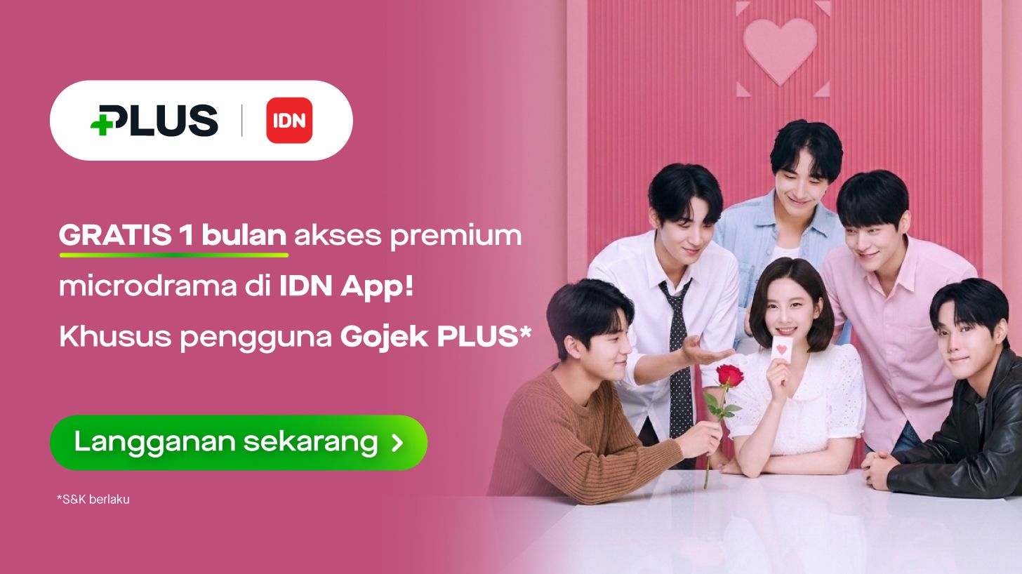 Sekarang ada benefit baru khusus pengguna Gojek PLUS paket 30 hari! Kamu bisa nikmatin GRATIS 1 bulan akses premium di IDN App untuk nonton berbagai microdrama seru tanpa batas.