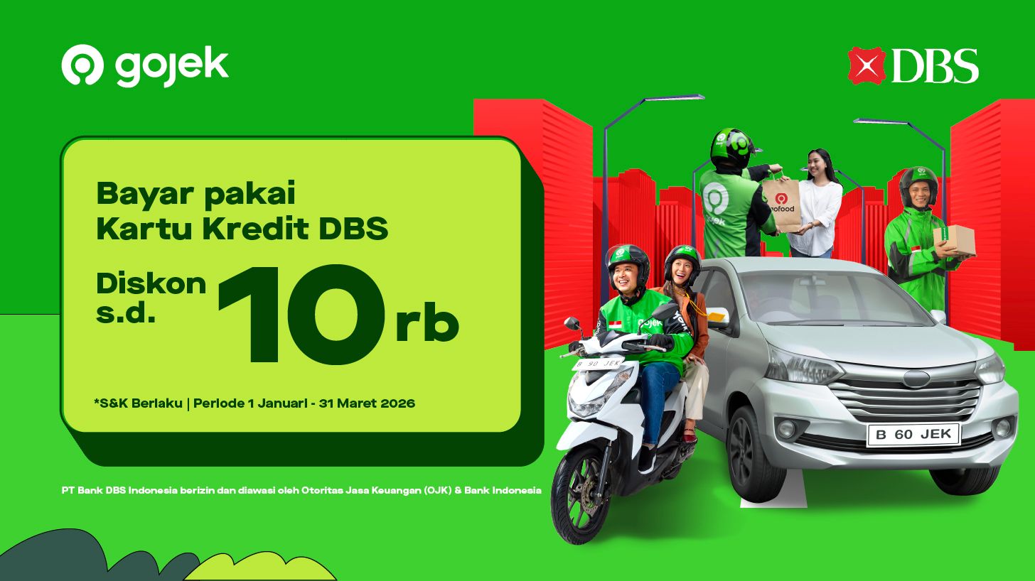 Pakai GoRide, GoCar, GoSend & GoFood Makin Hemat, Bayarnya Pakai Kartu Kredit DBS